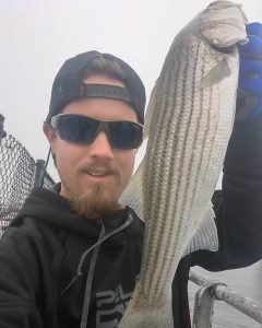 Mike Razmus was able to get out on the route 50 bridge today to do some casting in between rain events and had some success.  Mike used Big Bird’s World Famous Roy Rig to catch and release some healthy stripers.