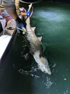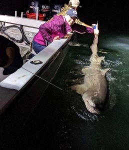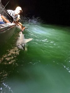 Last night Captain Chase Eberle of Chasin’ Tides Charters got out for his first inshore shark fishing trip of the year and had great success. Captain Chase and crew were 5 sharks for 9 bites and released a mix of sandbar and sand tiger sharks. The largest sandbar was 78″ and took an hour to get to the boat, and the largest sand tiger was a big 95″.