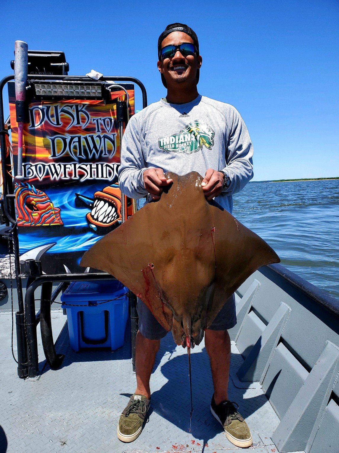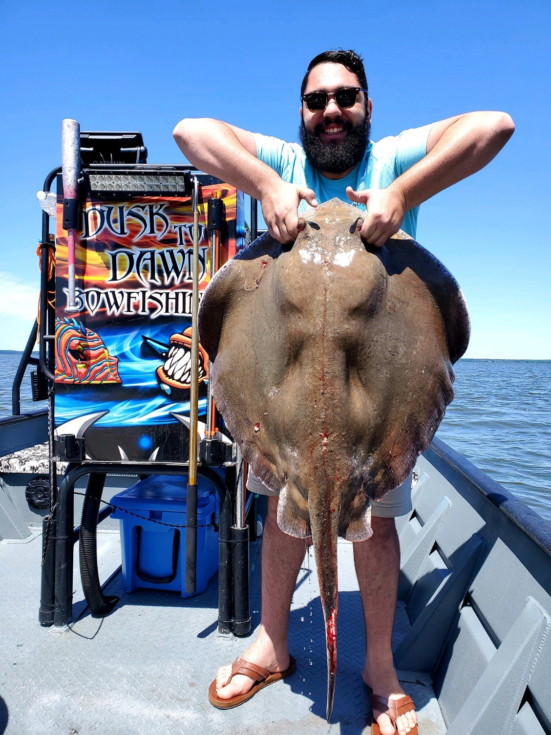 Captain Marc Spagnola of Dusk to Dawn Bowfishing was out yesterday and found some clean water and some rays. Captain Marc put his shooters on good action for cow nosed rays and a couple of big southern rays.