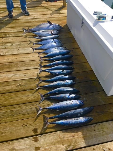 I got a Facebook message from Captain Mark Malamphy today who just got his new Finatic to Ocean City after a 1700 mile journey from Orange Beach, Alabama where he purchased it. Mark, Russell Collins and JB Sommer fished on the way up and were rewarded with these bluefin tuna, yellowfin tuna and false albacore while off the coast of North Carolina. Hopefully those fish are on the way north soon!