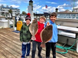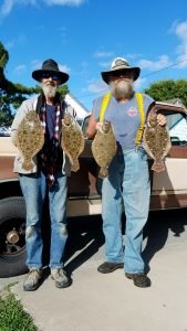 Big Bird Cropper and “Neighbor” Dave were on the water today and had some luck with the flounder. Bird and Dave put four keepers in the box and then had Dave Messick of Hooked on OC get a nice shot for me.