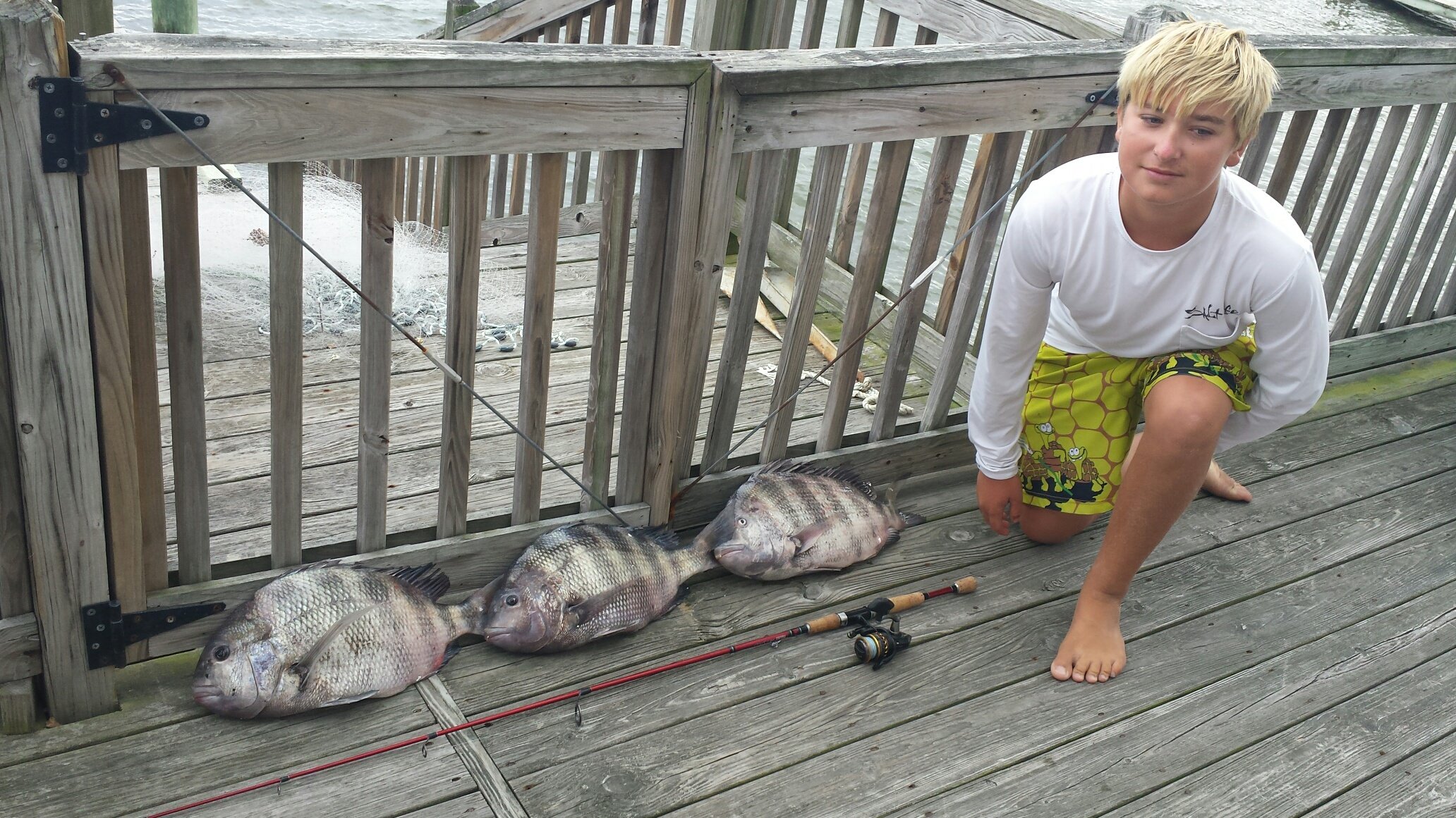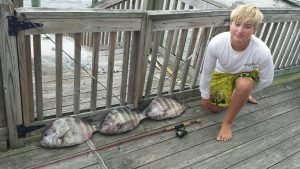 David Herbst used sand fleas in the Ocean City inlet late last night to put these three sheepshead on the dock.