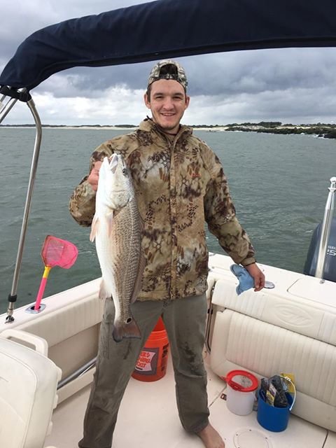 I got a Facebook submission from Megan Humphrey with this nice shot of Ben Humphrey who caught this 8 pound 4 ounce red drum on a live sand flea just outside the south jetty.