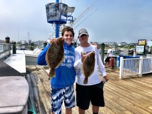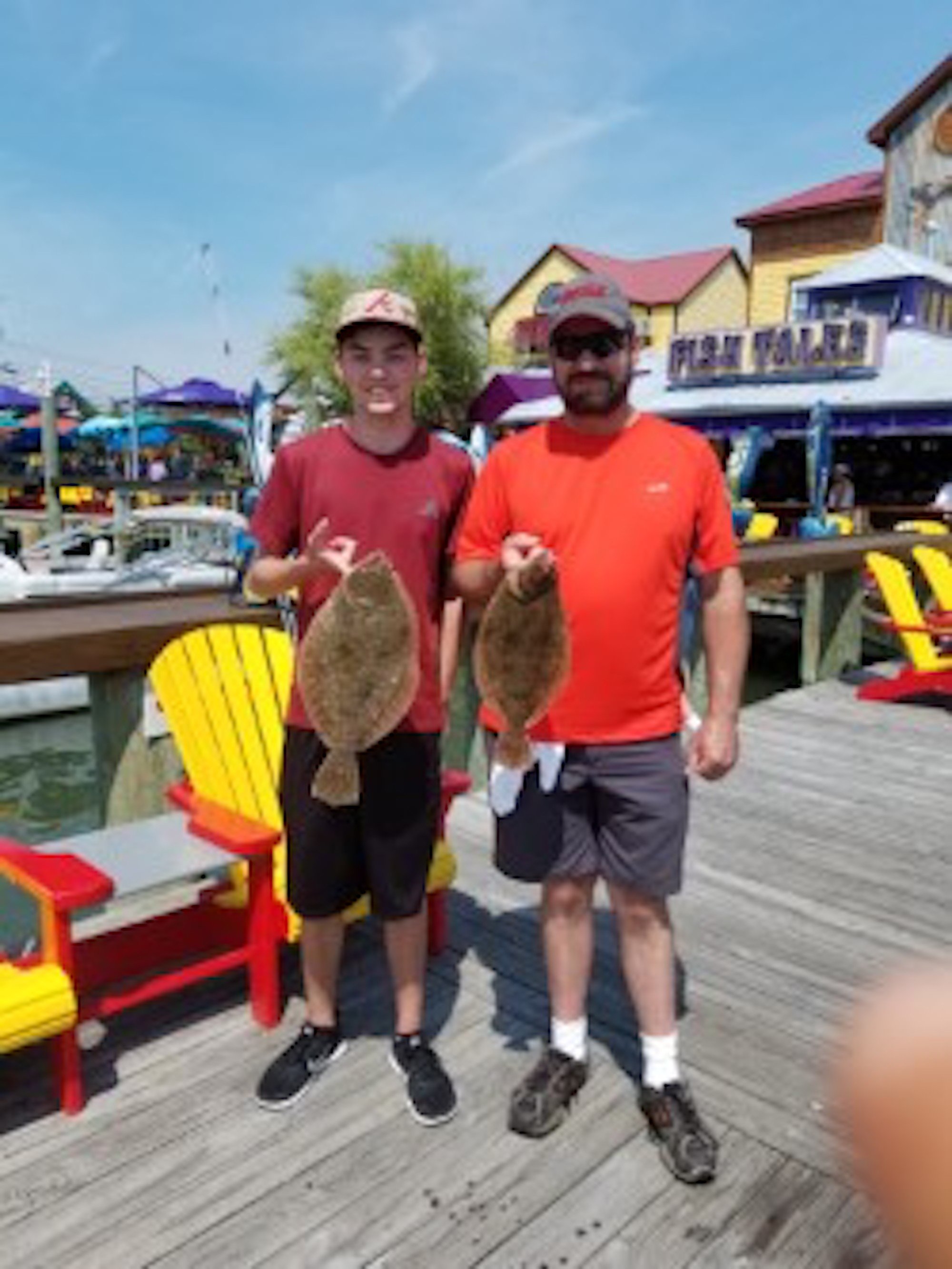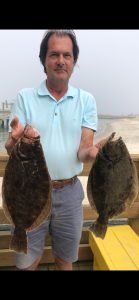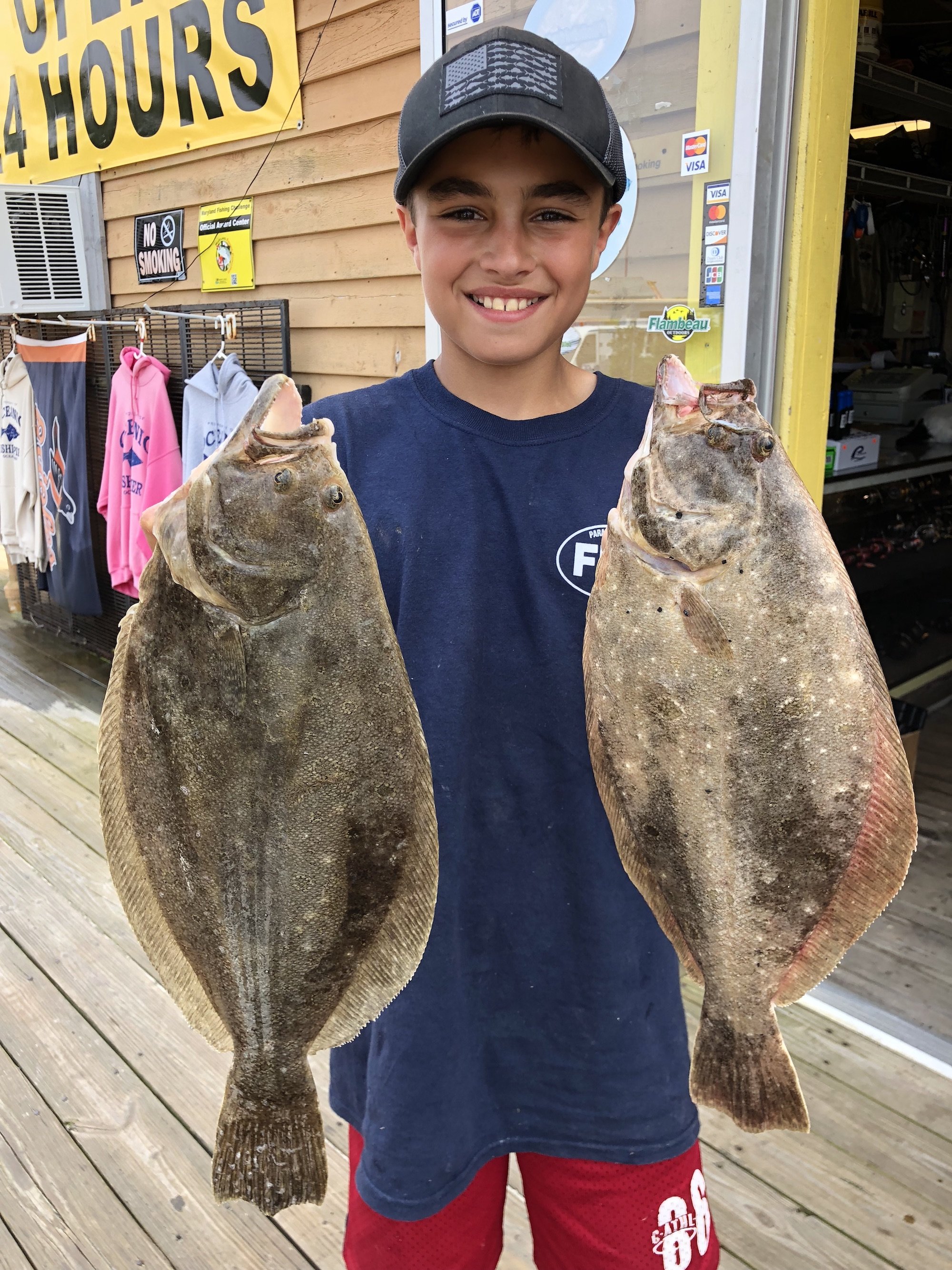 I got two shots from Bear at the Oceanic Pier today of anglers that had good luck with flounder off of the 2nd street bulkhead. 11-year-old Aiden from Quakerstown, PA landed two flounder today that he was able to take home. The bigger fish was 19 1/2″ and one was caught on a spoon while the other was caught on a minnow.