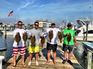 What’s not to be expected all the time is the really good flounder fishing that is going on in our back bays right now. We’ve got clean water conditions on the high and outgoing tide and that is enabling anglers to take advantage of what seems to be a bunch of flounder hanging out. Captain John Prather of Ocean City Guide Service had a couple of trips today where he put some flounder in the box. This morning Captain John put his anglers on two keepers and a cobia that was released and this afternoon he put his anglers on seven nice keepers for the box.