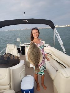 Vanessa Haldeman was fishing with her fiancé Steve Gurreri when she landed this beauty of a 21″ flounder.