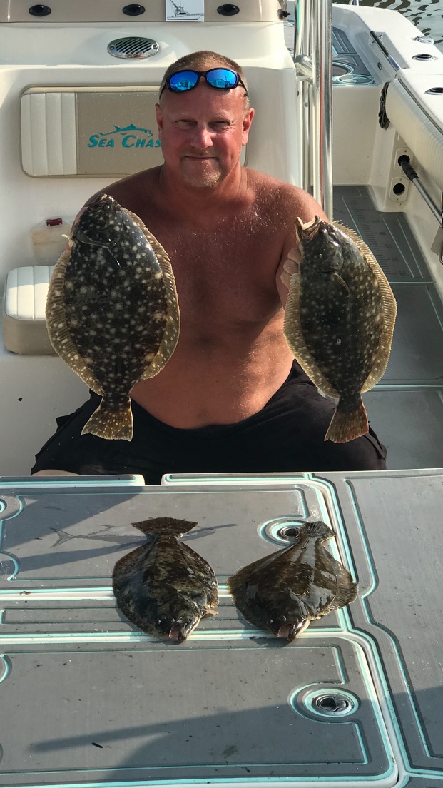 Rich Daiker followed up yesterday’s limit of flounder with another limit today.  Rich fished live bunker down by the route 50 bridge to land these fish.