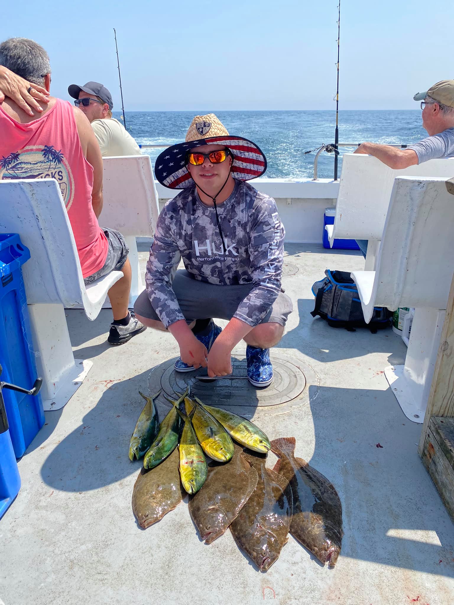 Captain Chris Mizurak of the Angler had a nice day on the rip today with flounder, sea bass and some mahi for his folks.