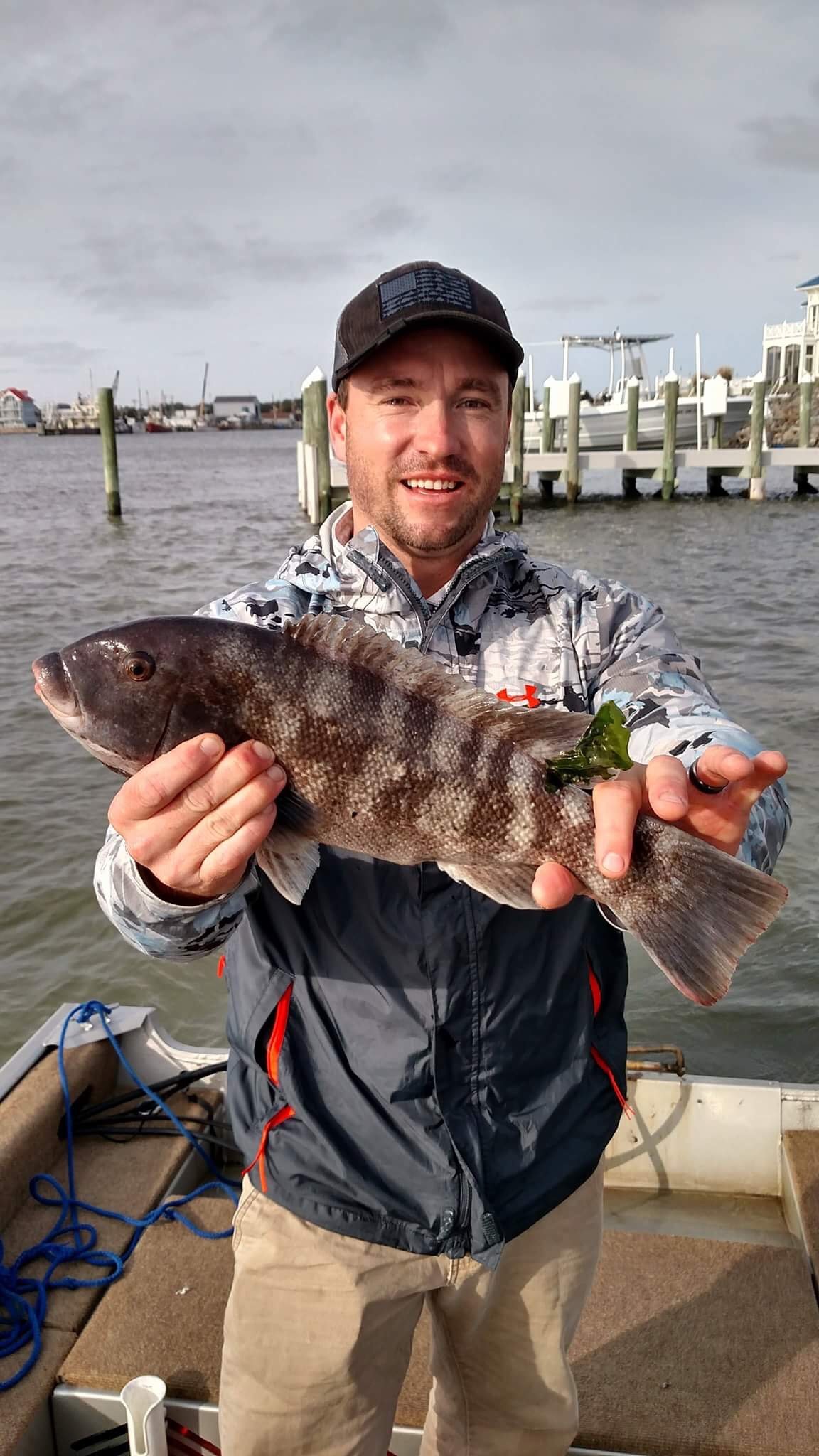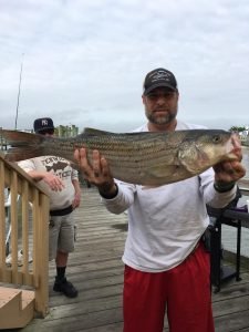 “Captain” David Croaker Herbst put Blake Gunther on this keeper tautog while fishing the rocks at Martha’s Landing. David also caught a keeper fish on the trip.
