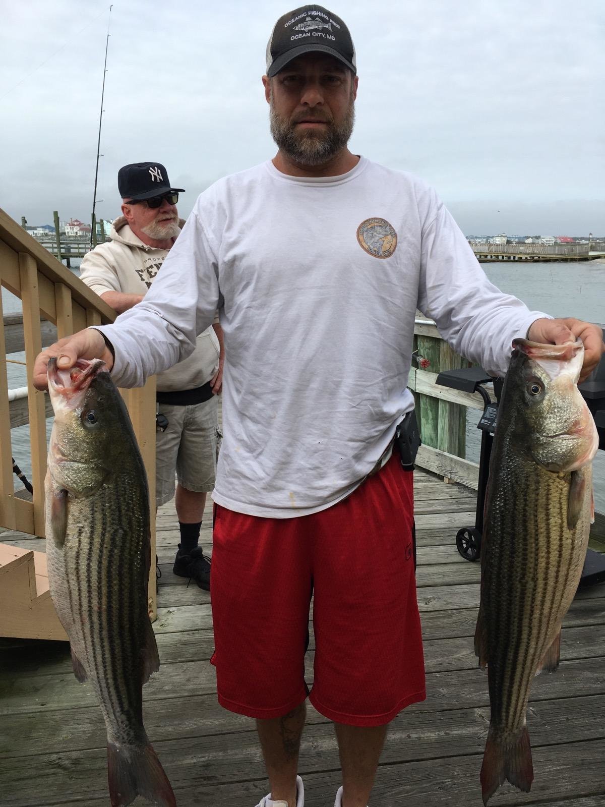 I got a text from Bear down at the Oceanic Pier today with two pictures and two words…..”John again.” Our buddy John Peyton was at it again fishing by the Lazy Lizard with Zoom baits where he caught these nice keeper rockfish…..again.