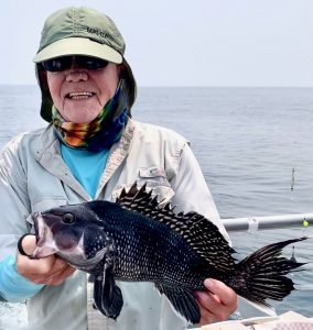The ocean was flat calm for the bottom fishing party boat fleet today and Captain Chris Mizurak of the Angler knows those are my kind of days. Fishing was my kind too with lots of legal sea bass and some fat flounder making their way into coolers.