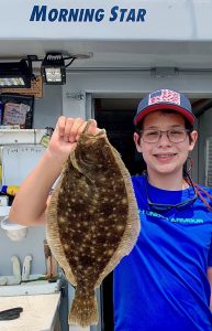 Remington Morrow, 16, caught this beauty of a 21″ flounder while fishing the shoreline on the back side of Assateague Island this afternoon.