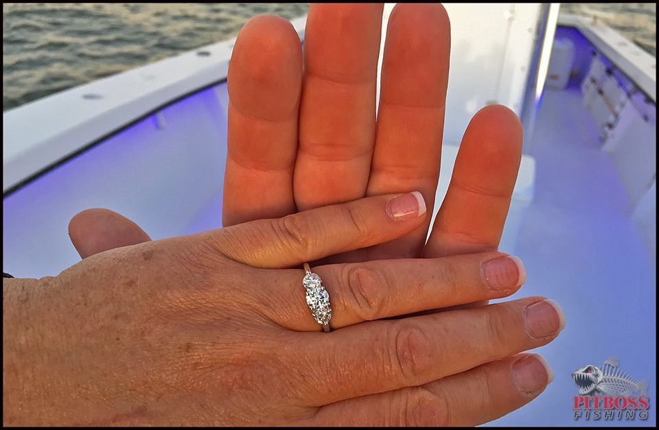 Captain Jeff’s been doing well with the inshore species lately, but he made the catch of his lifetime on his sunset cruise this evening when he popped the question to his girlfriend Karen Langford Kelley and she said yes.