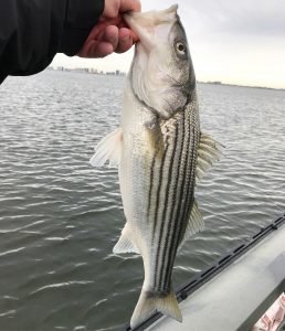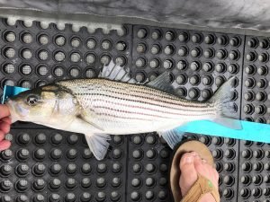 Captain Jeff’s solo trip lasted about four hours and produced 11 rockfish releases up to 25″ and another 4 fish that he lost on the way to the boat. Captain Jeff reported cool water conditions that had the fish sluggish, but they were feeding so he was able to put some in the boat. All of the action took place at the route 90 bridge on Big Bird Cropper’s world famous Roy Rig.