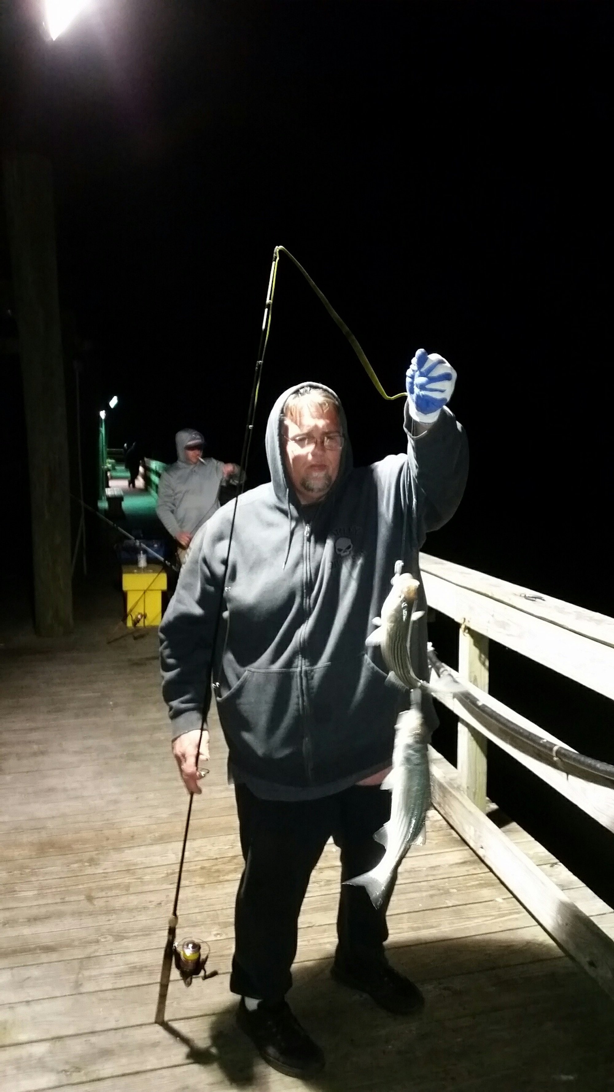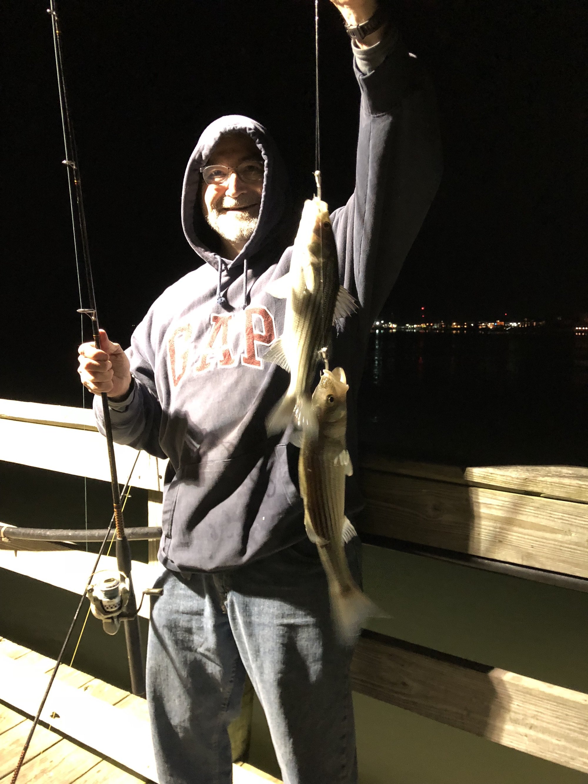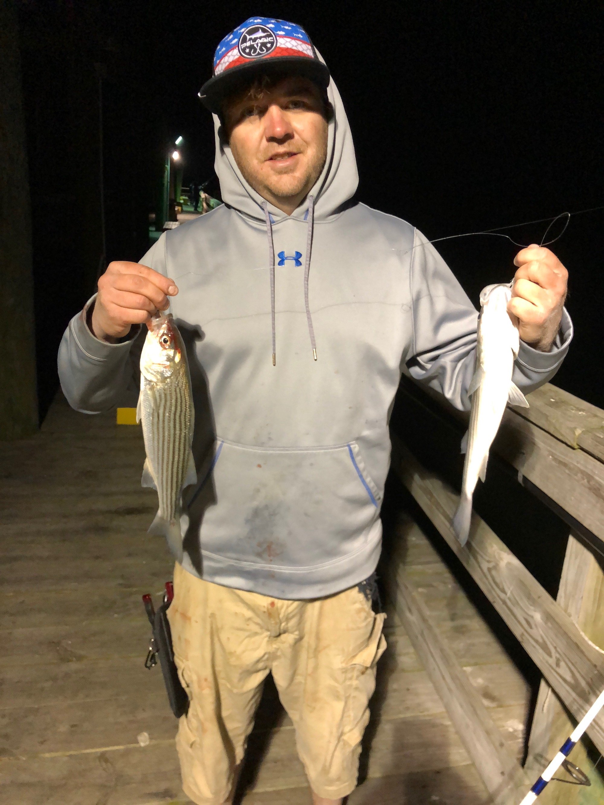 Over the past several days small rockfish have made an appearance in the back bays of Ocean City and there are A LOT of them. The guys at the Oceanic Pier got out last night and absolutely mugged them. Bear sent the following pictures with the report that he and the crew caught “hundreds”. The fish are no bigger than 22″ right now and most of them are in the 15″ to 18″ range. There might not be any keepers in the mix, but if you’re looking to have some fun you can catch a fish (or two) on just about every cast.