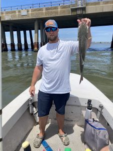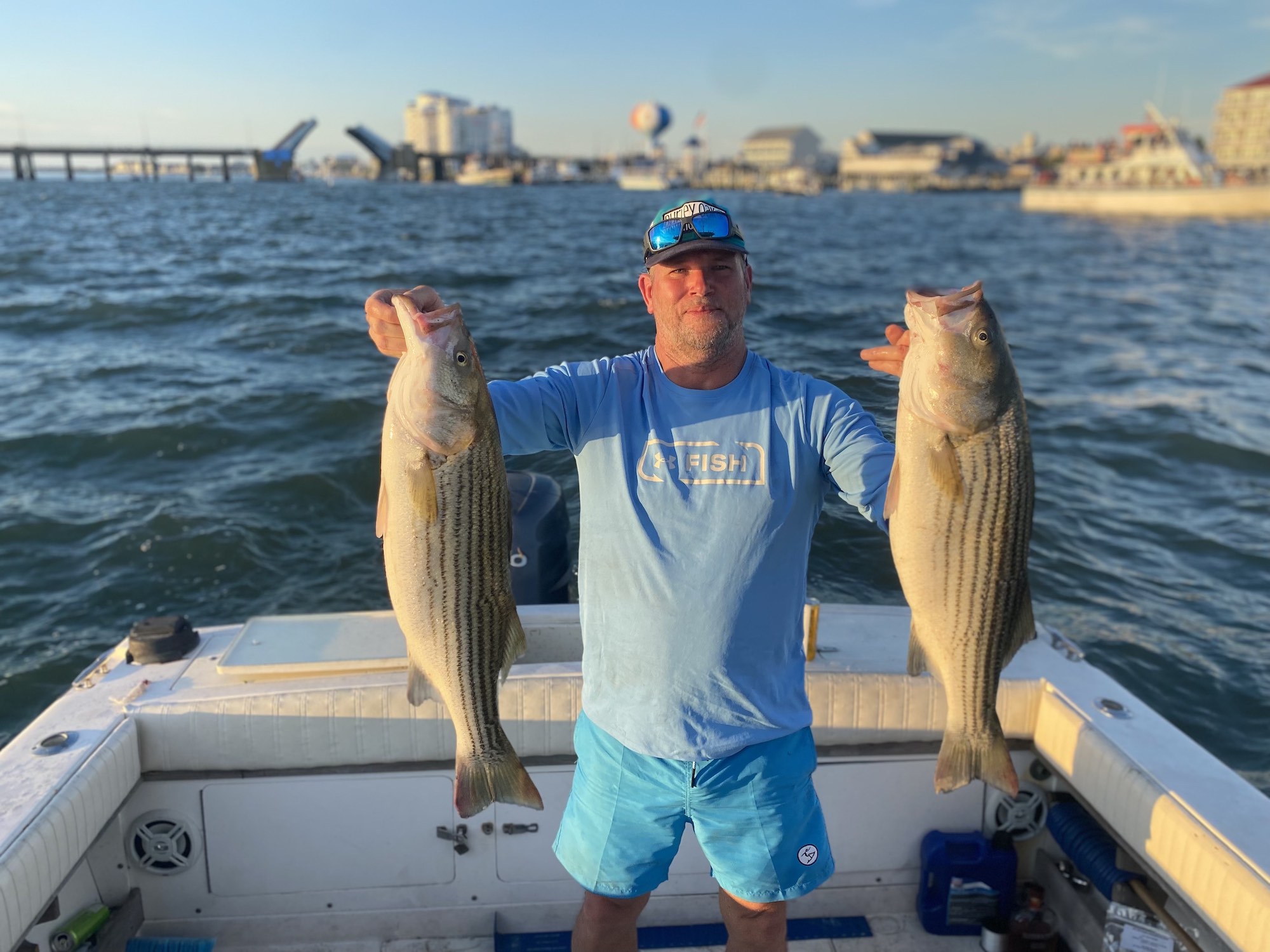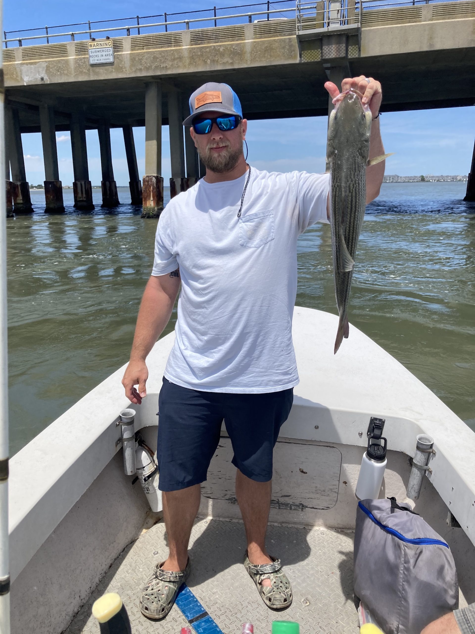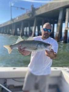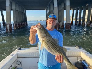 Big Bird Cropper, Ron Smith of the ACSA and Brandon Smith fished the route 50 bridge where they had some catch and release rockfish action and some big bluefish.