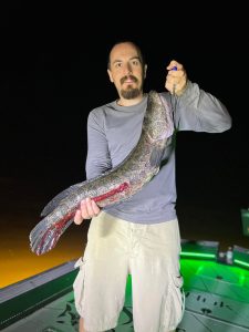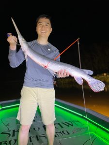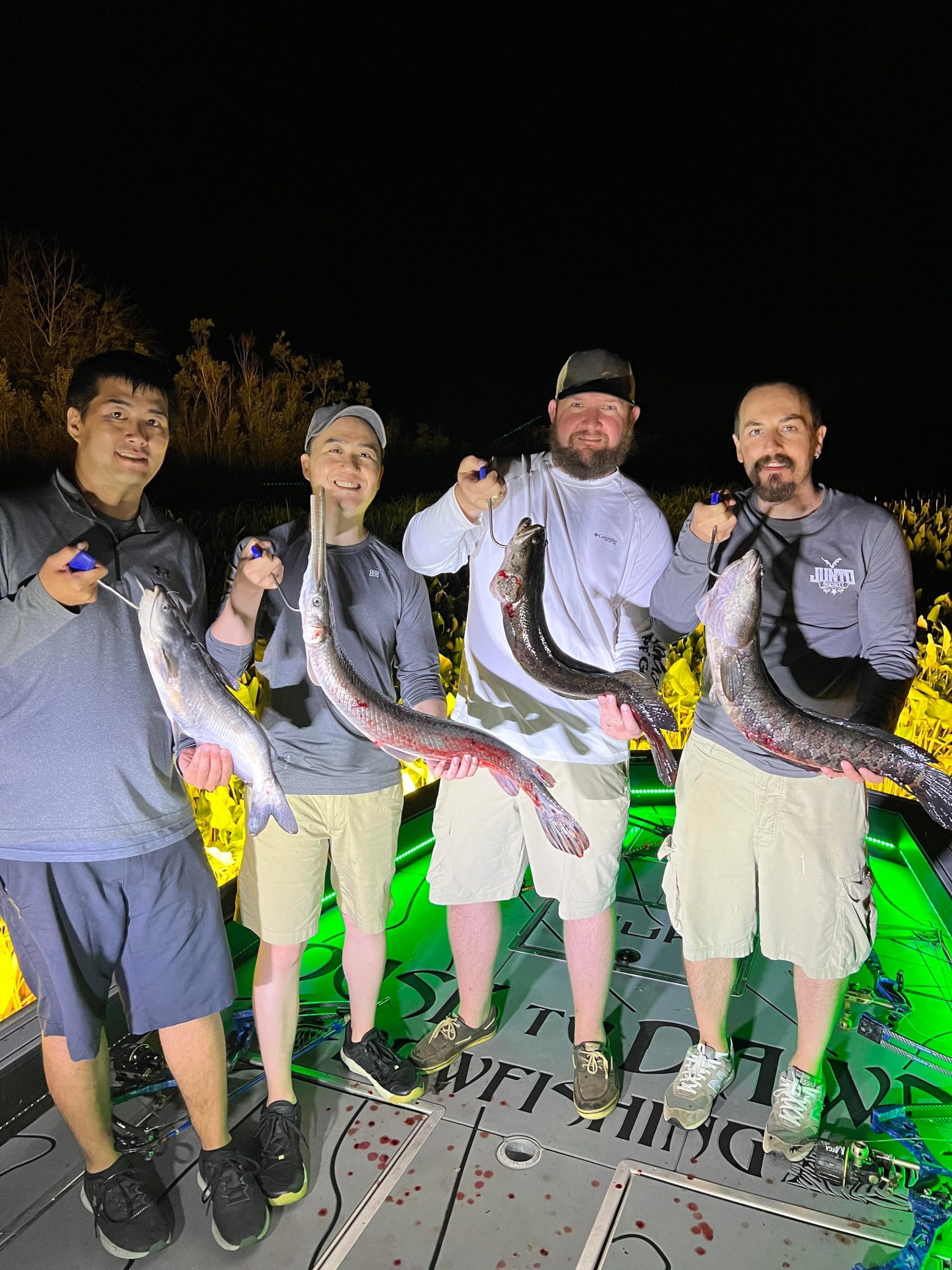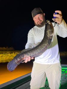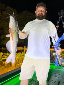 Captain Marc Spagnola of Dusk to Dawn Bowfishing has seen some more good shooting the past few trips with rays for days and snakeheads, gar and big catfish at night.