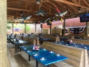 The restaurant also has a fenced in children’s playground area, cornhole & a portable ice cream cart vendor to entertain the kids & sugar them up as needed.