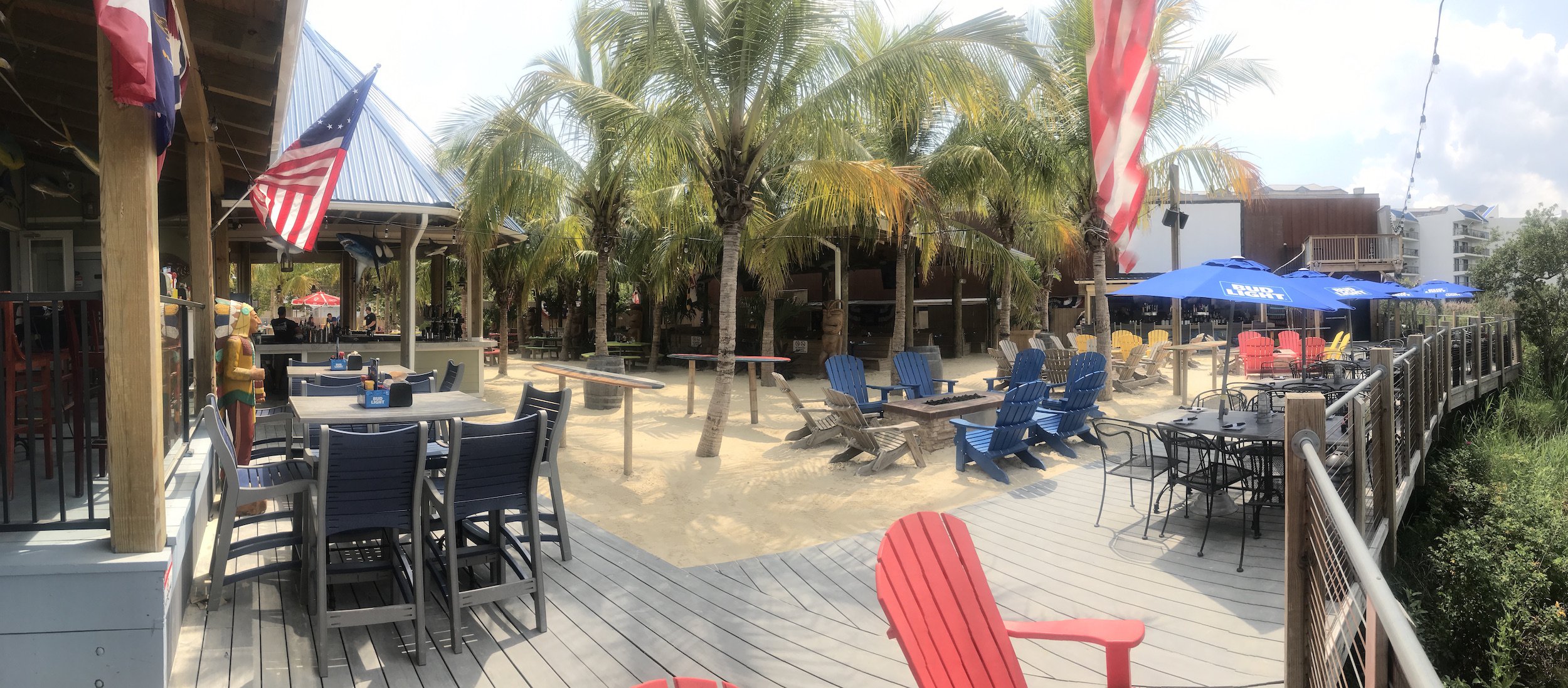 Ropewalk OC is a very large restaurant with multiple bars & seating areas. It has indoor seating featuring a huge glass window view of the bay, outdoor deck seating, sandy beach area seating & a fire pit area to sit & enjoy your cocktails.