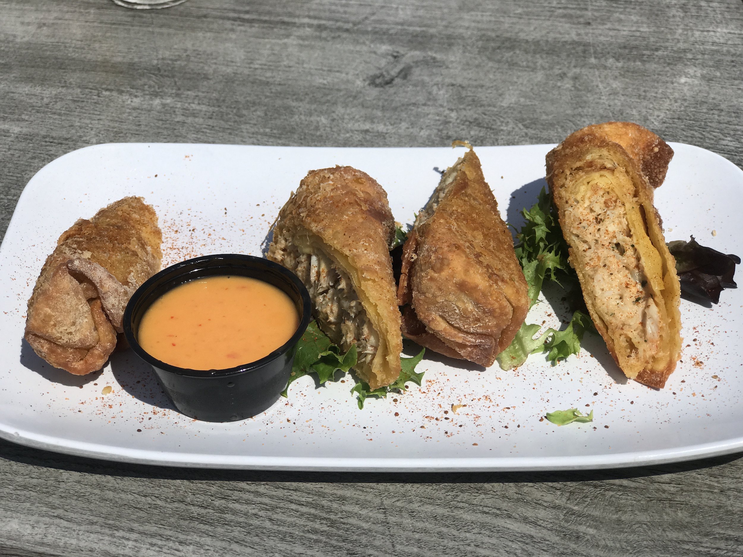 Next, we ordered several appetizers including BBQ wings, Victory wings & Crab Cake Egg Rolls. The BBQ wings were crispy with a sweet, smoky BBQ sauce which we really enjoyed. The signature Victory wings were dry rubbed & glazed with a little bit of a spicy kick & blue cheese for dipping. These would be perfect with an ice cold beer to watch the game on one of their many TVs. Each order of wings includes a full pound of hickory smoked wings seasoned with their house rub before being tossed in your choice of sauce. Other wing options include Mild, Rush, Old Bay & Jerk Spice & all are served with bleu cheese dressing & celery.