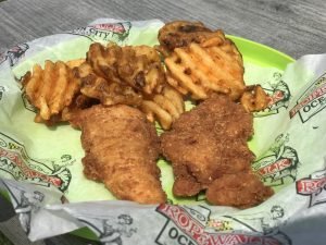 Ryan’s kid’s meal of chicken tenders & waffle fries was served on a Ropewalk OC frisbee to take home as a souvenir. The chicken tenders & fries were hot, fresh & crispy & disappeared quickly.
