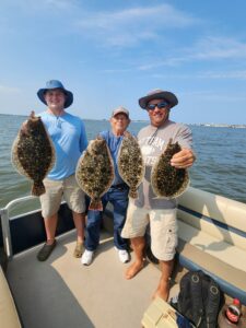 Dave, Jared, and David caught these keeper flounder between 17 1/2 and 21 inches in front of the commercial harbor on minnows.