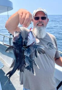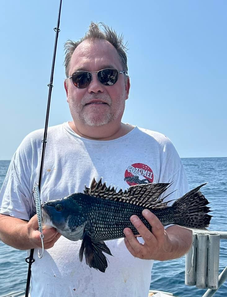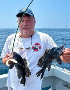 away from the tournament, Dan Cavey and his crew had an awesome day of bottom fishing with the limit of sea bass from inshore structure.
