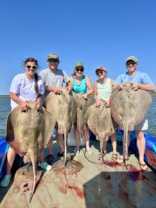 Captain Mark Spagnola of Dusk to Dawn bow fishing, kept his shooters busy today with some nice rays from the south bay.