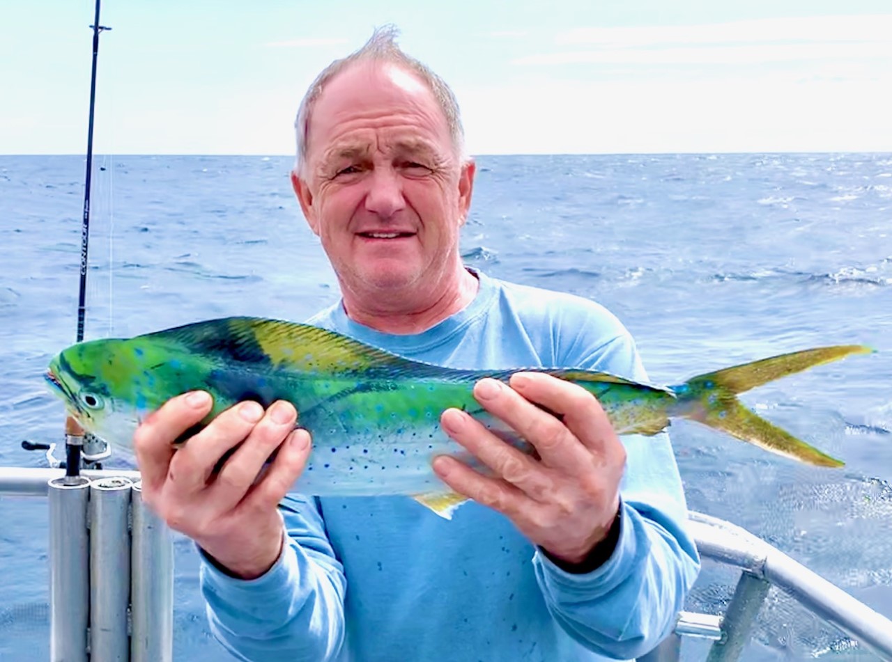Soon after the ‘late morning’ wind increase was upon us. NE at 20+ became just about boisterous & far too soon, but still doable. Mahi-mahi bit ok for heavy cloud cover. High man had 8, another 7; low man had 4.