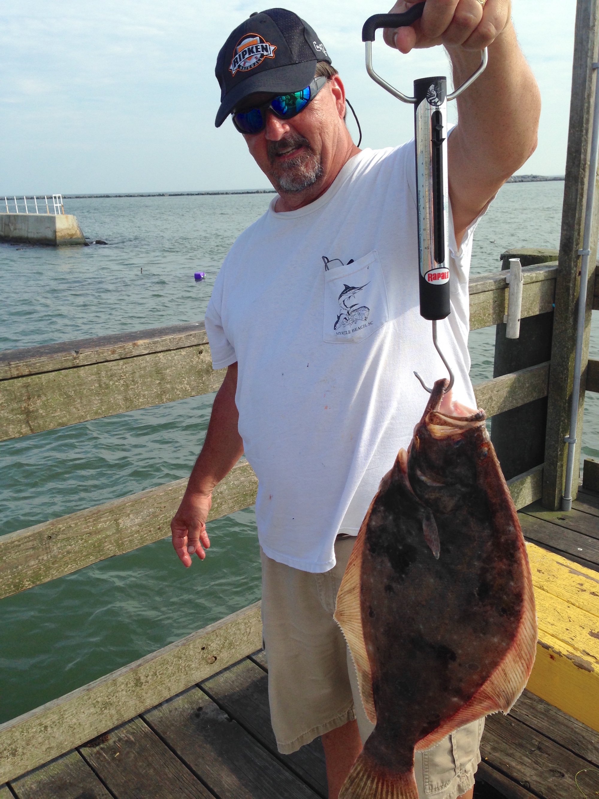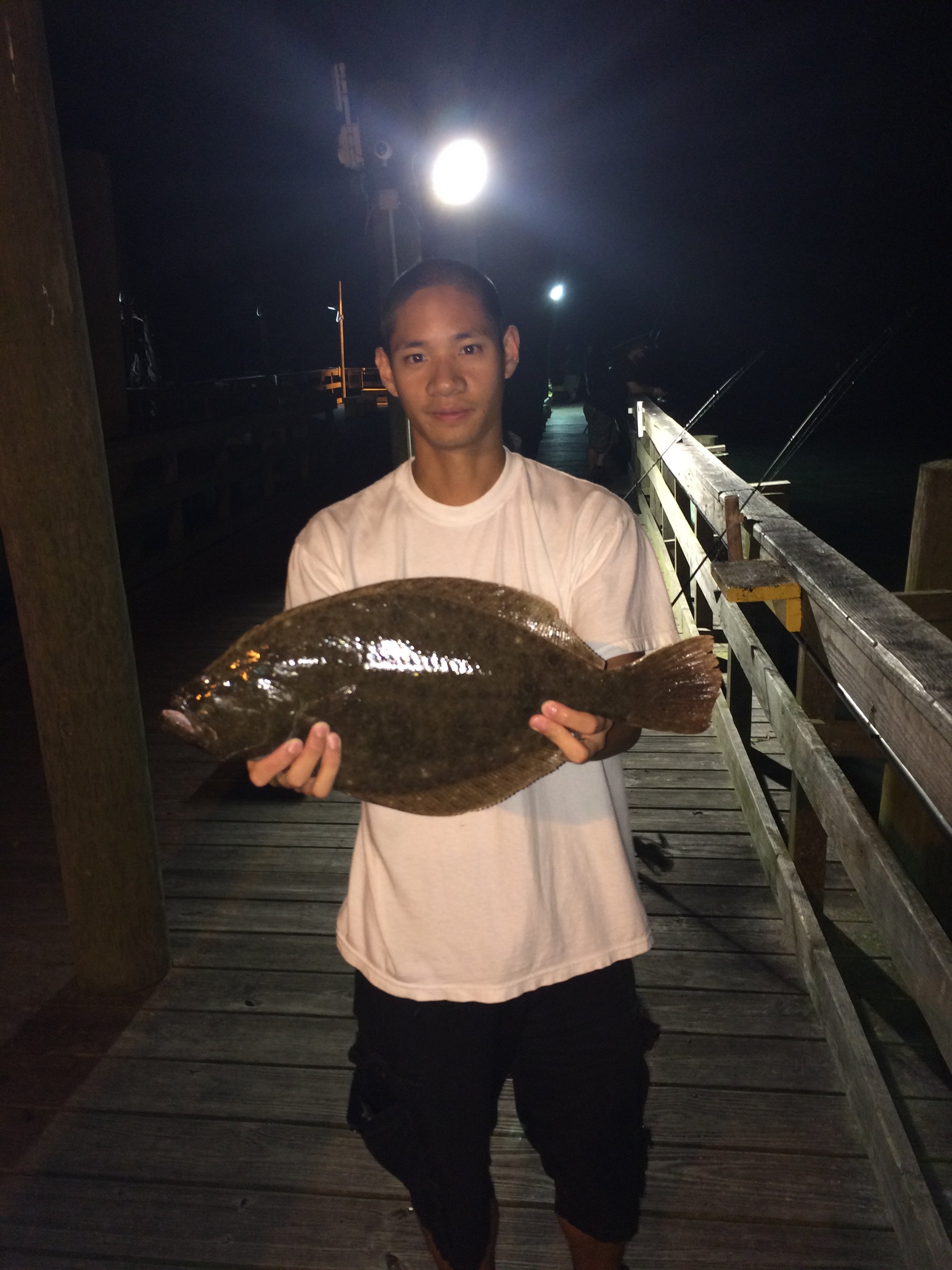 Dave from PA caught a nice 19″ flounder off of the pier’s “buffalo head” minnows.