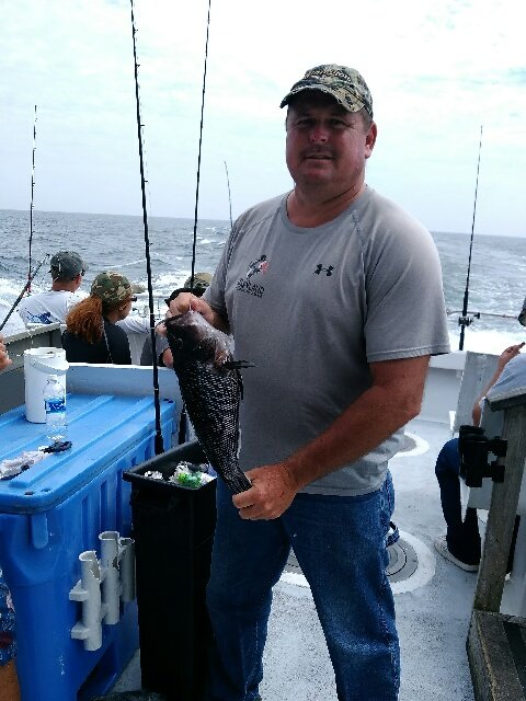 Bear at the Oceanic Pier in downtown Ocean City submitted some photos today of some of the recent action he’s seen. Todd Hornbacker from Chambersburg, PA caught a 2 lb 12 oz sea bass on shiners and won the fish pool on a local party boat.