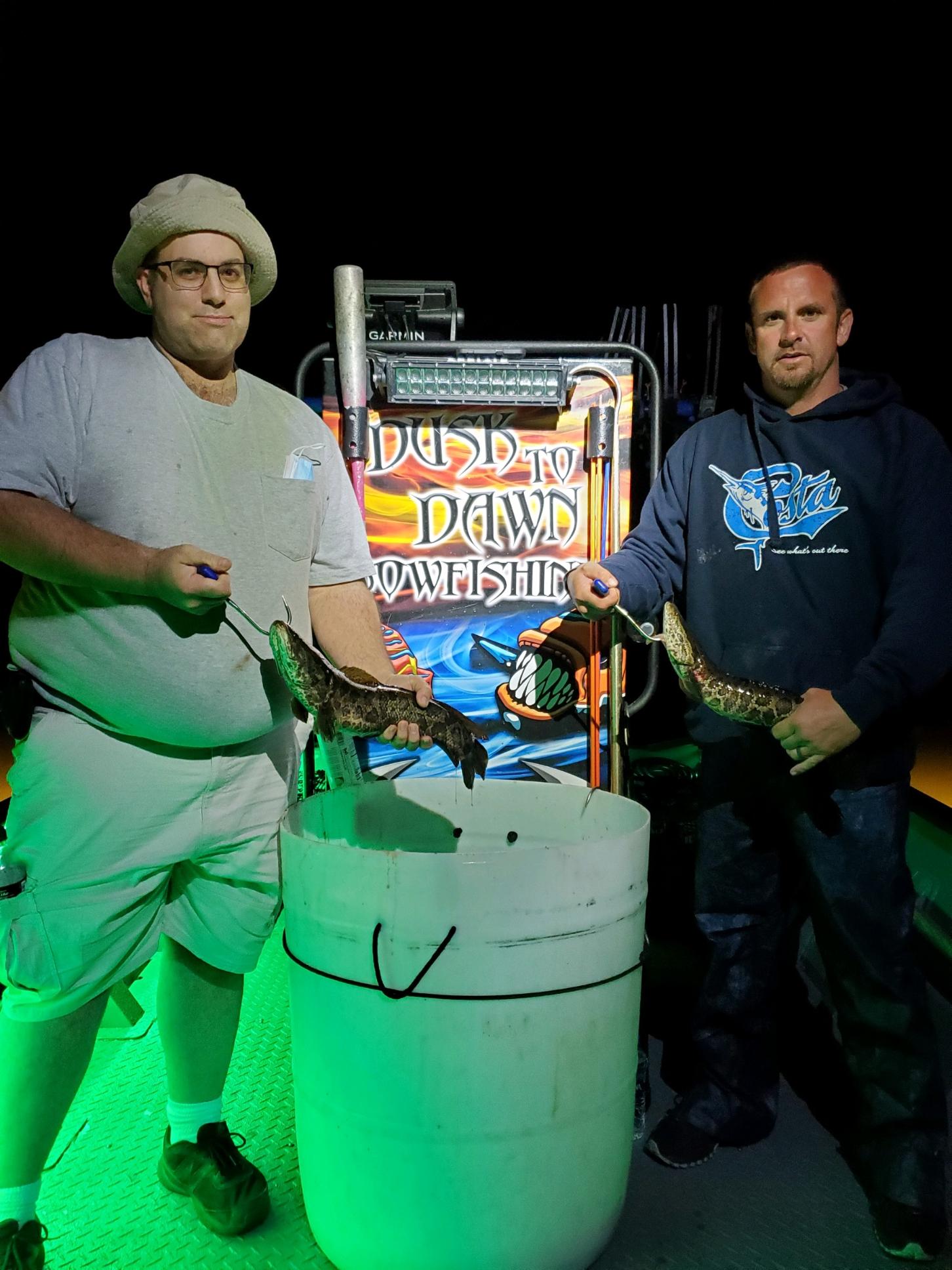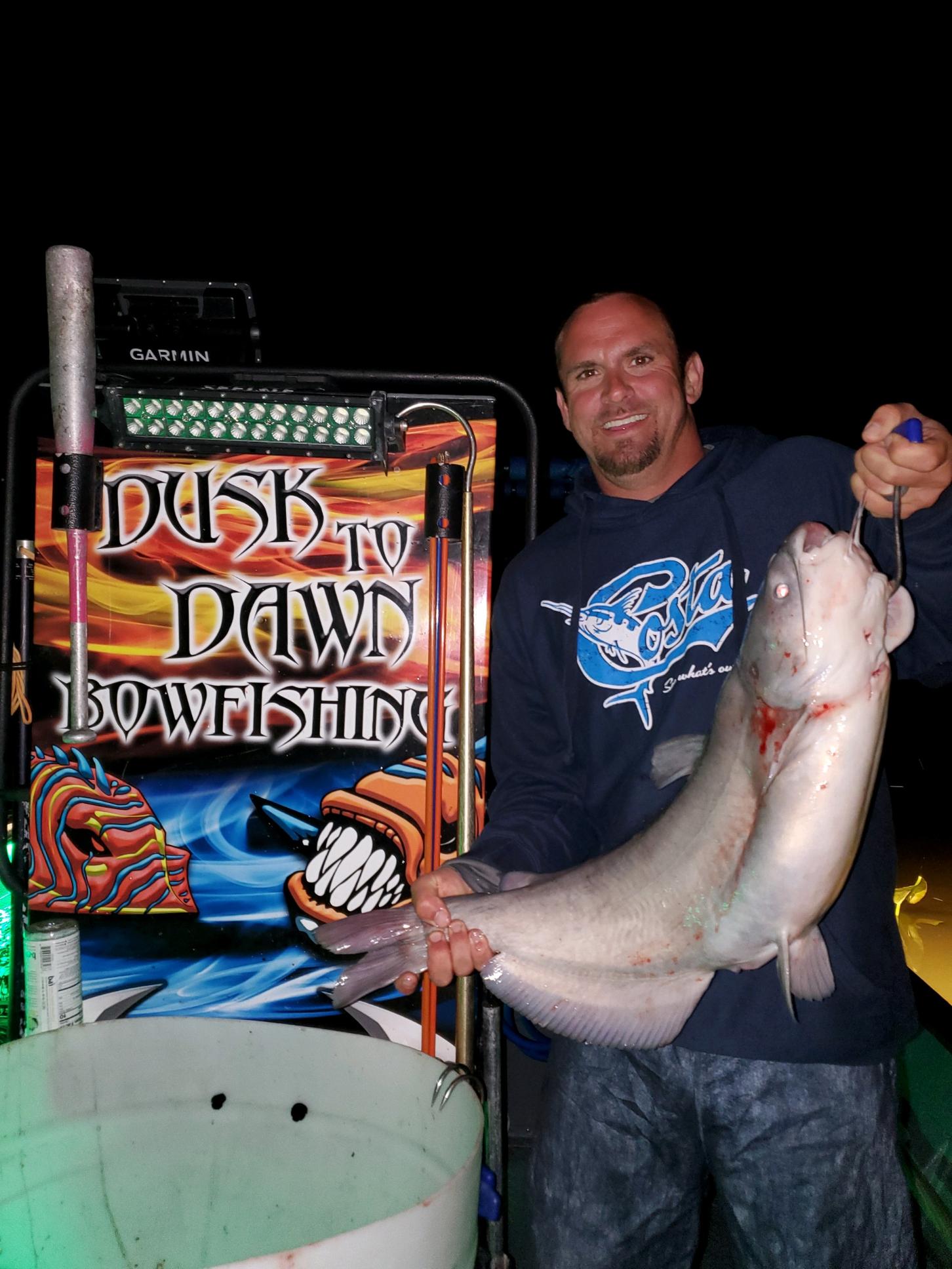 Captain Marc Spagnola of Dusk to Dawn Bowifishing, otherwise known as The Shallow Water Robin Hood, had a great tip last night under moonlit sky. He and his merry men had good shooting for gar, snakehead and some BIG catfish.