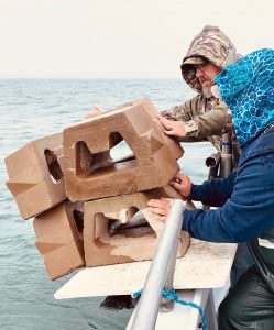 Oyyyy… Began the day with a dogone fog & easterly breeze. Hardly my favorite fishing conditions. Gave folks a weather warning, loaded 12 90lb reef blocks and got underway. Well, fog wasn’t so tight, seas weren’t too high; we dropped blocks and paddled on off a bit.