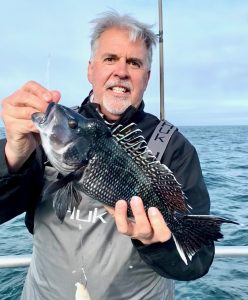 Today started off foggy with a slight breeze, but by the time it was lines out the wind was puffing hard out of the east. Captain Monty Hawkins of the Morning Star had thankfully put a boat limit of sea bass in the boat before it started blowing too hard.