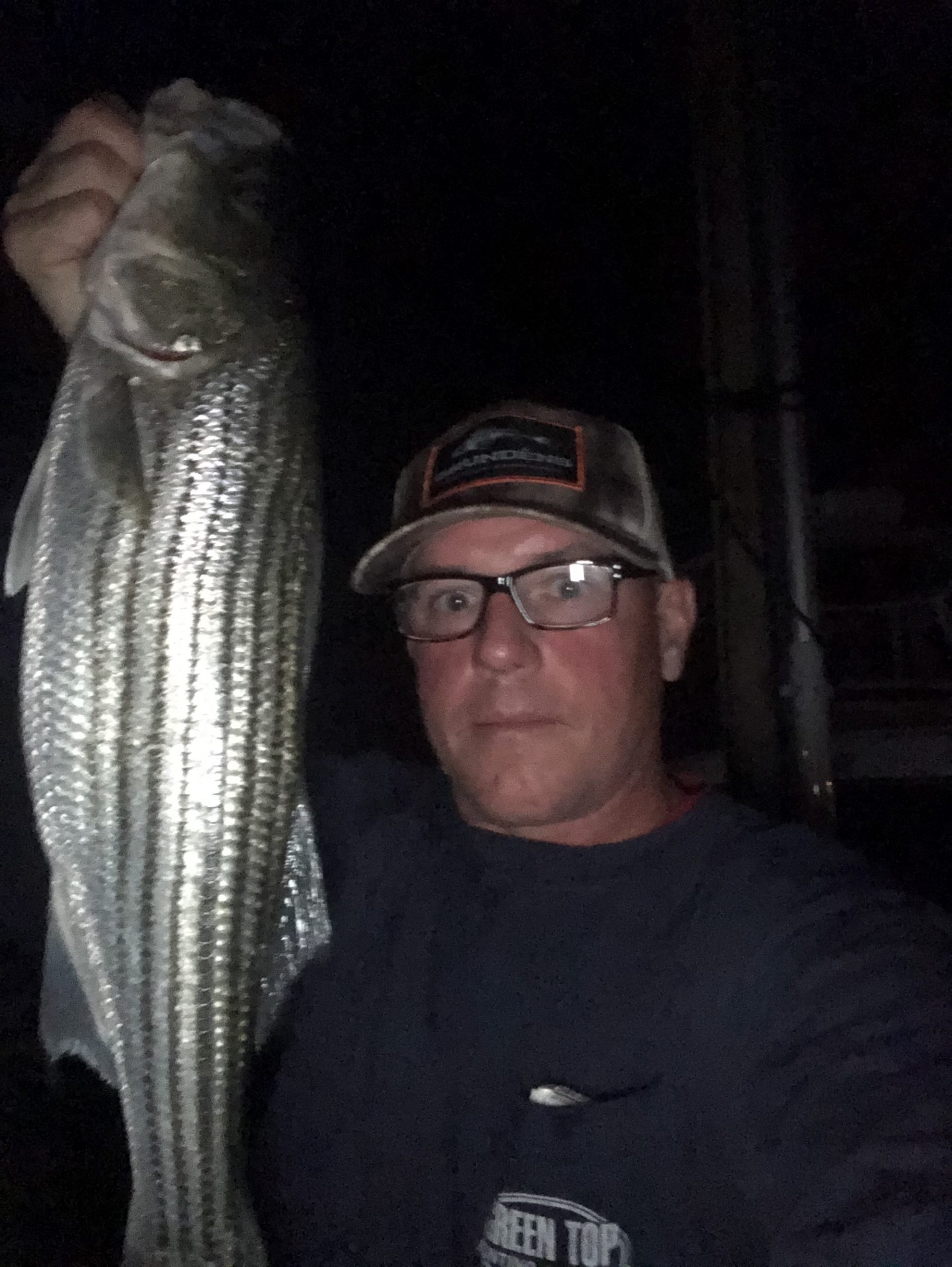My buddy Steve Tapley was out last night in search of some catch and release shad fishing from the 3rd street bulkhead, but was surprised by this 24 1/2″ throwback rockfish that ate his small spec rig.