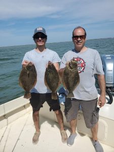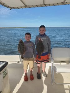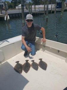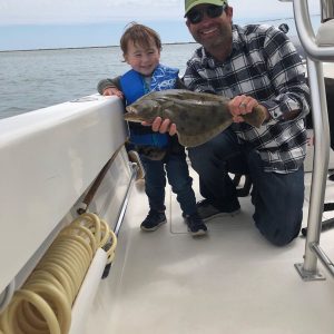 The inshore and back bay charter fleet has been enjoying some good fishing lately for rockfish, blues, shad and flounder. Captain John Prather of Ocean City Guide Service had a great weekend of fishing and put his anglers on some good fishing with several keeper flounder on trips. Captain John’s young son Mason even got in on the deal.