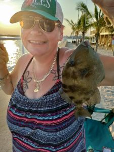 Heidi Brown had some good fishing down at the Oceanic Pier this weekend with a nice triggerfish and keeper flounder of 19″ and 21 1/2″. Her husband Cory pitched in with a shad catch and release.