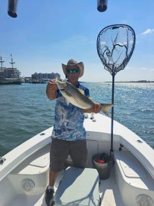 Bluefish were snapping in the back bay again today and Captain Wayne Blanks of Bayside Guide Service was there to take advantage of it. He also had throwback rockfish action up to 24″ or so.