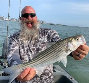 Captain Jeff Coats and his wife Karen were out on the water #enjoying Karen’s day off. They tried for flounder with their new Fish in OC Deadly Doubles for a while with no luck and then switched gears and tried the route 50 bridge for some rockfish. The action was good with small fish that were released and caught on Roy Rigs and Karen even caught one on a Deadly Double with a white Gulp swimming mullet.