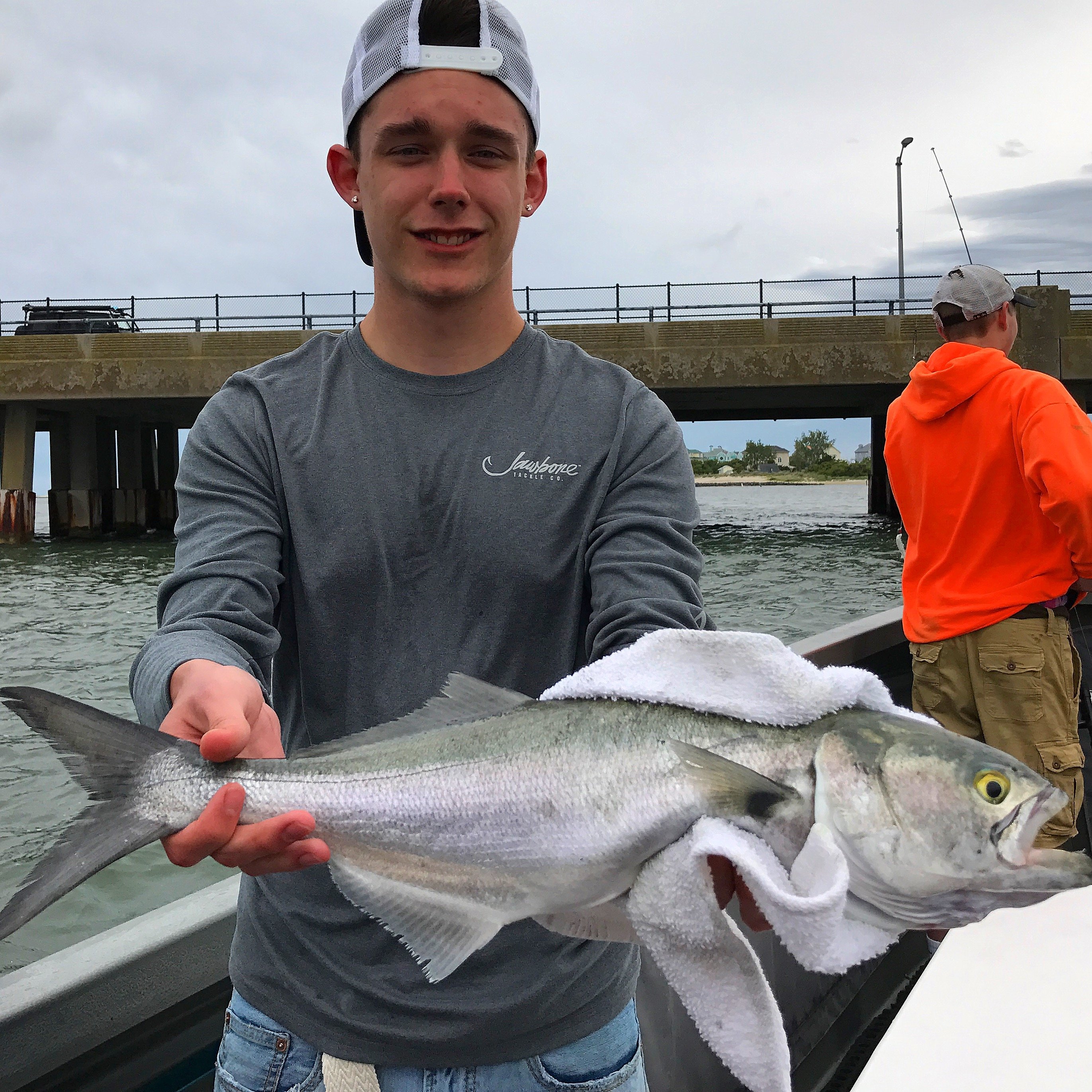 Inshore fishing was the only thing going on today with the windy conditions and despite it being a little chilly this am and a little choppy on the bay there was some decent fishing going on. Captain Jeff Coats of Pitboss Fishing had some recently graduated “schoolies” on board today and had some great luck fishing the route 50 bridge. Captain Jeff put Bryce Slusser, Colton Morgan and Josh Auxer on 15 “schoolie” rockfish, a nice bluefish and even a nice puppy drum on Roy Rigs. All of the fish were released.