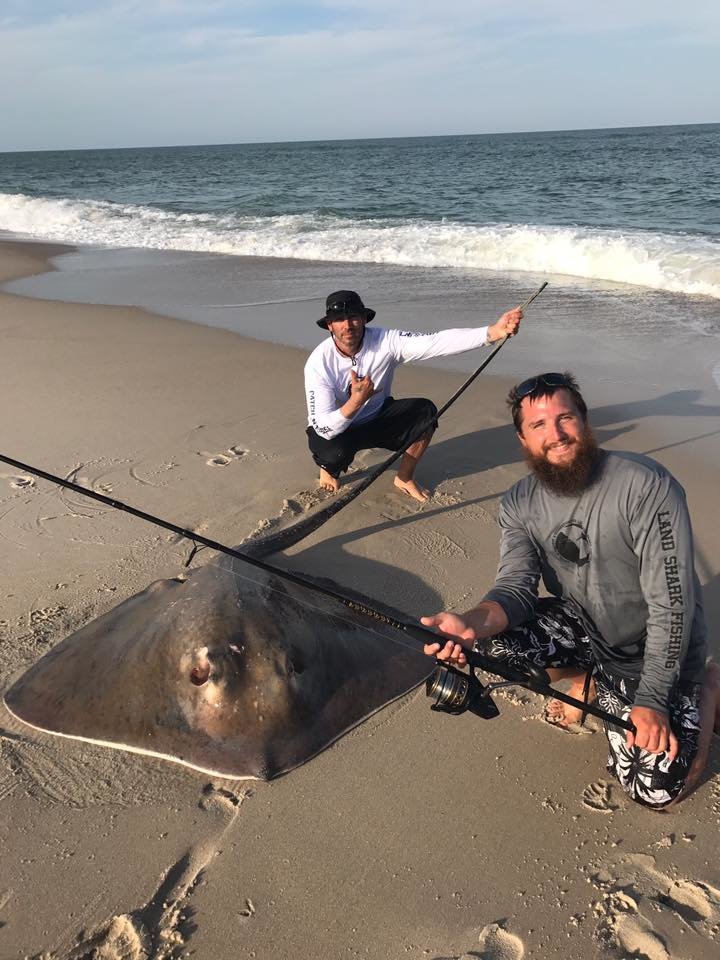 OC Sharkhunters Nick Ager and Steven Mogel landed this absolute monster southern ray in the Assateague surf last weekend.