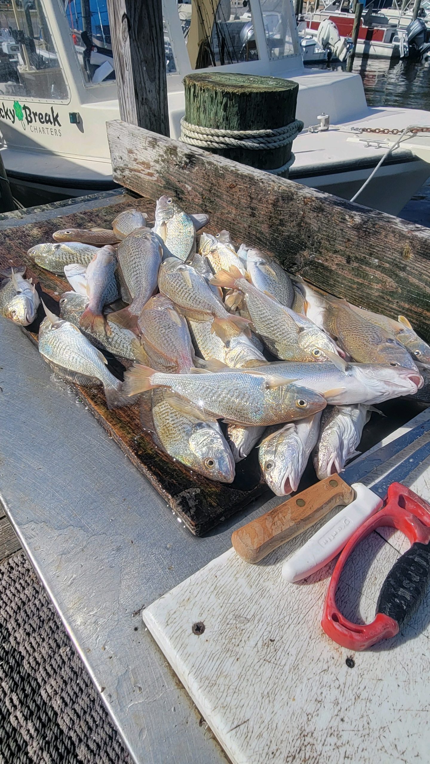 Captain Jason Mumford of Lucky Break Charters had two meat haul trips today with loads of croaker on one trip and plenty of Spanish mackerel and a flounder on another.