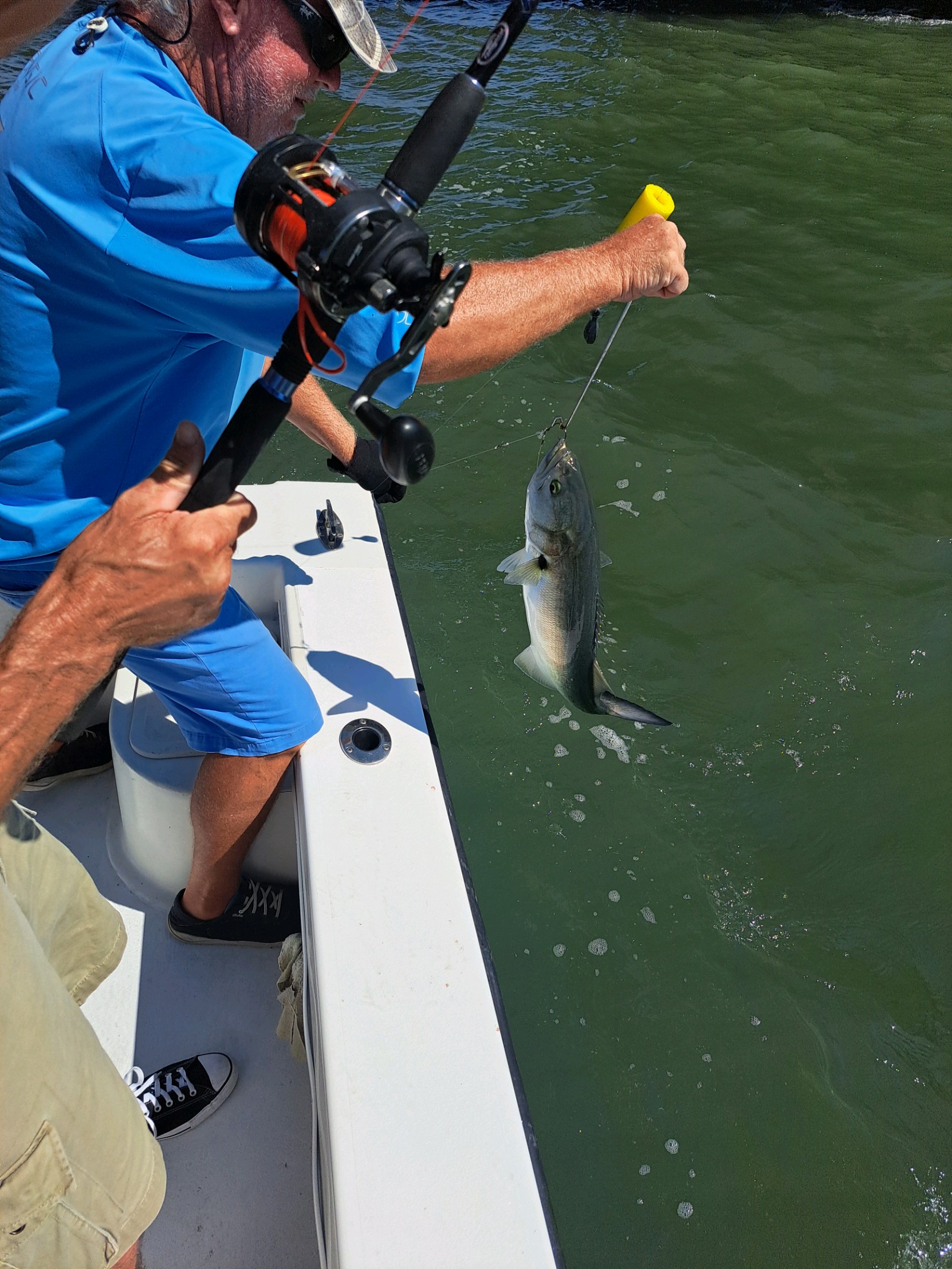 Captain Wayne Blanks of Bayside Guide Service is all over the bluefish again and today he put some more big fish in the fish box.