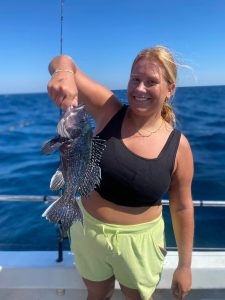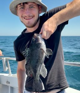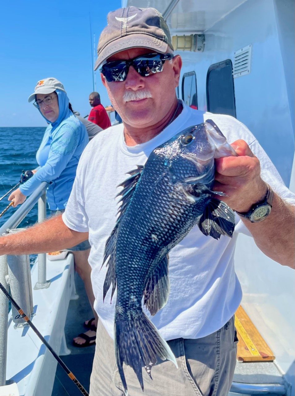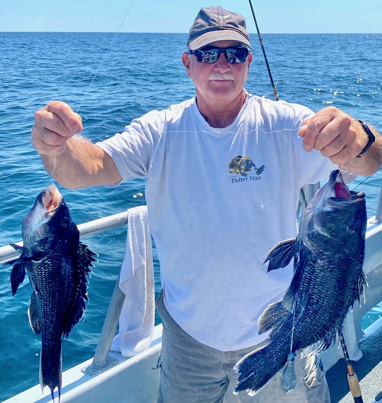 Captain Chris Mizurak of the Angler had a good day on the rip today with plenty of hungry sea bass and some good flounder around the rail.