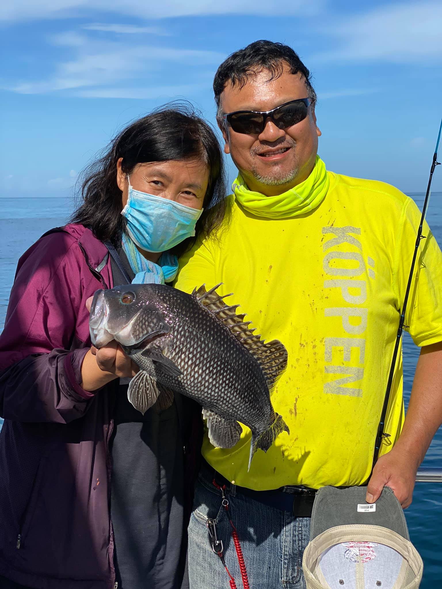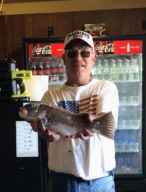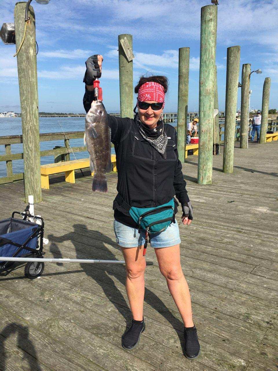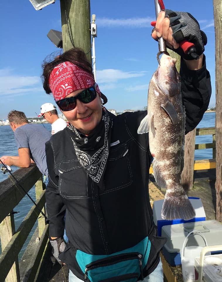 Bob Haltmeier down at the Oceanic Pier sent in a couple of photos this afternoon with the report that some tautog are being caught.  Buddy had one keeper and Chrissie had two keepers from the pier today.