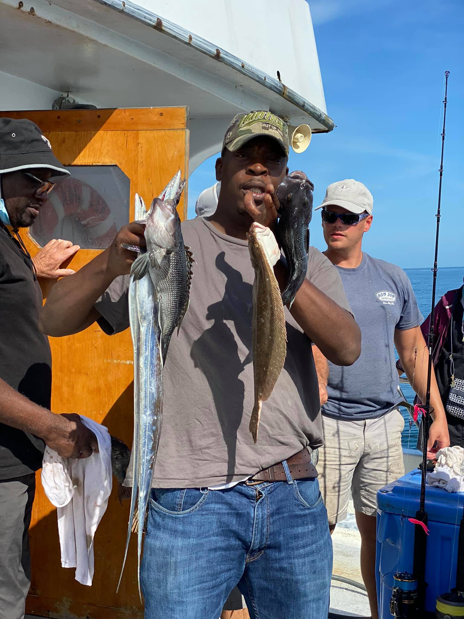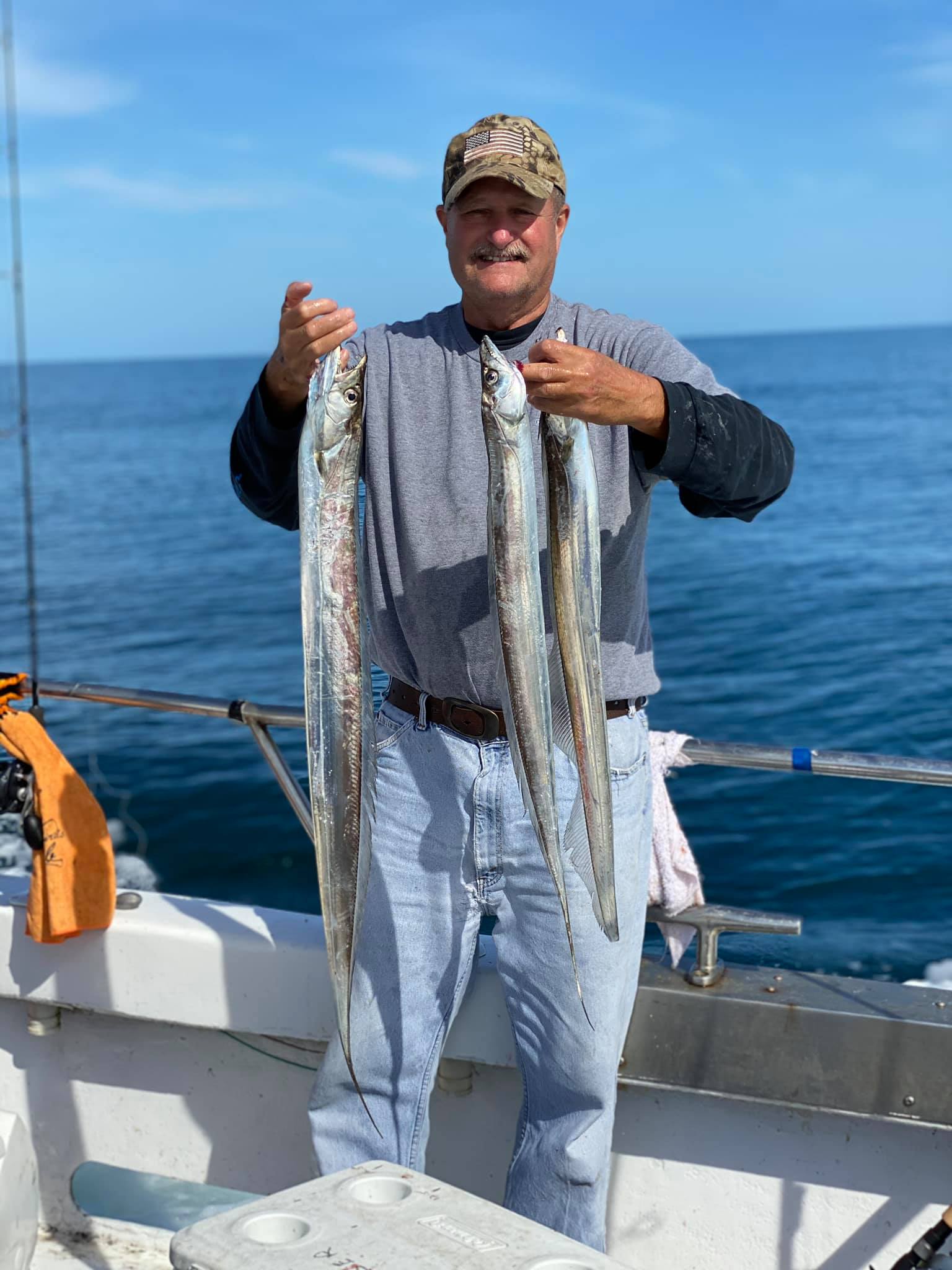 Captain Chris Mizurak of the Angler knows that I like it flat calm so today would have been “one of your days!”  The fish were snapping too with loads of sea bass, some flounder and even some more cutlassfish ending up in lucky angler’s coolers.