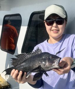 Anglers fishing on board the Angler with Captain Chris Mizurak had some fussy sea bass, but there were some quality fish caught along with a few flounder.