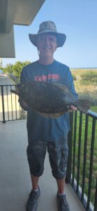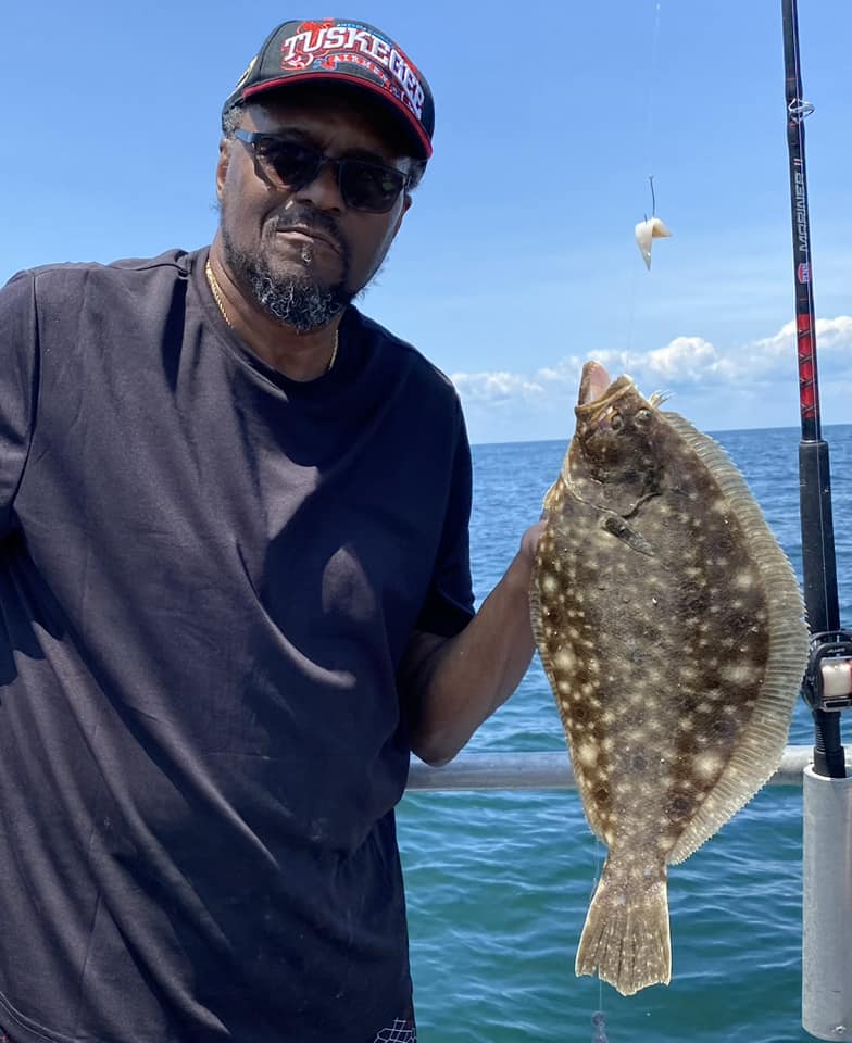 Lamont Hilbert fished Russell’s Reef and landed three keeper flounder and a nice triggerfish today on squid and Gulp.