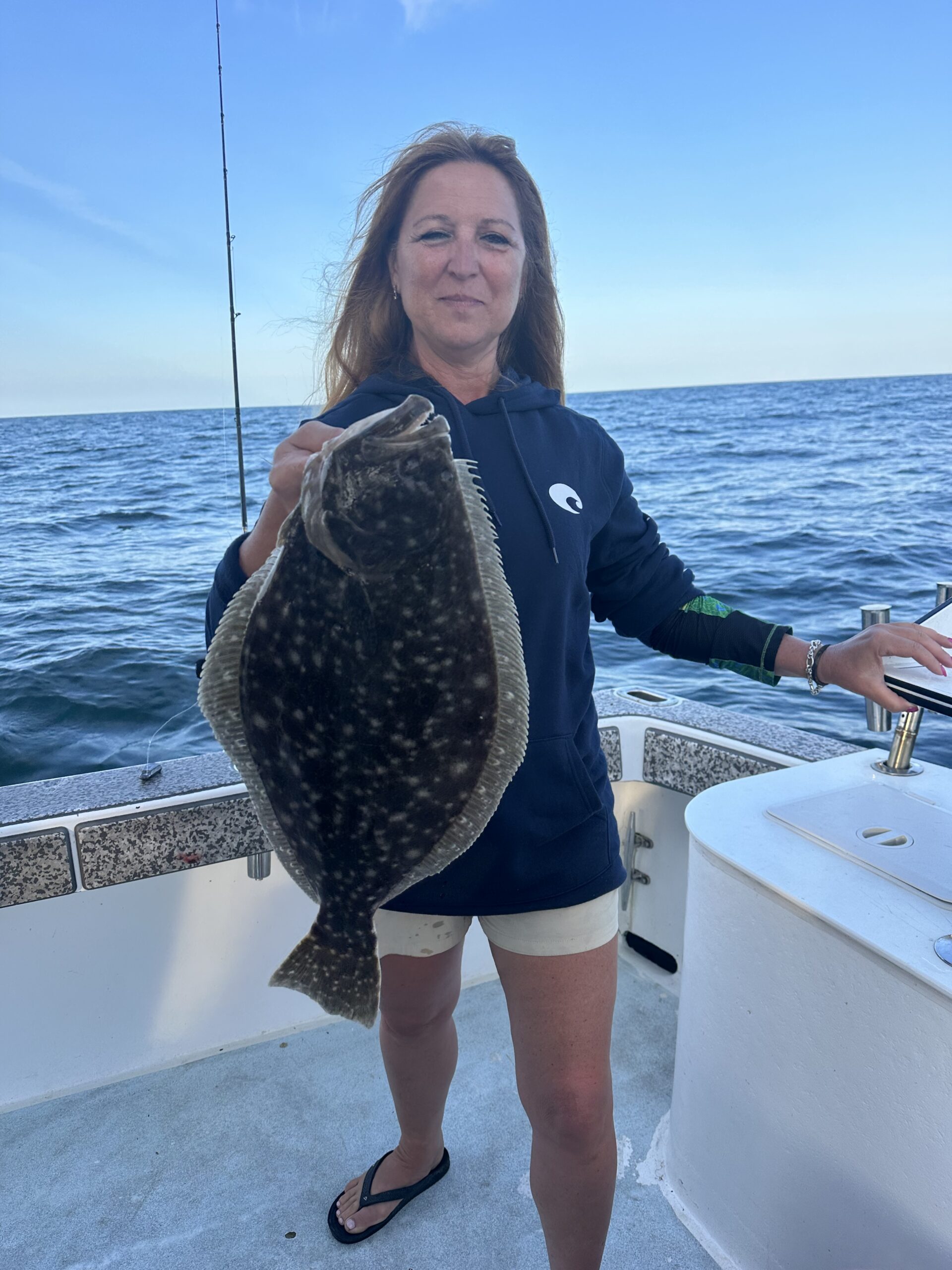 The weatherman got the forecast right today and it was absolutely picture perfect beautiful on the ocean and inshore on the bay. Winds were light, skies were sunny and temps were in the 70s. It felt more like late September than early August and I for one will take it.