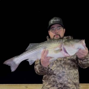 Ryan Ellerman of R.E. Appraisal caught this nice slot rockfish of 30.5″ on a 5″ shad from the route 50 bridge last night.
